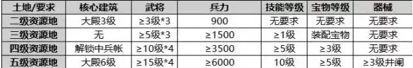 所以,让我们来看看攻克各个等级资源地的要求,下方的表格为实测得出,可供主公们参考。