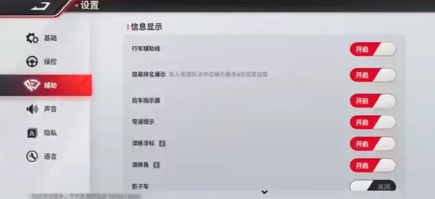 在漂移时,新手很难确定最合适自己操作风格的起漂点,此时就需要辅助标线来帮忙。因此,萌新车手可以开启「弯道提示」「漂移浮标」以及「行车辅助线」,在看到有弯道提示的时候就要做好准备,在浮标处进行漂移。等到完全熟悉车辆在漂移时的手感后,就可以关闭辅助标线进行全手操作,体验感更佳。