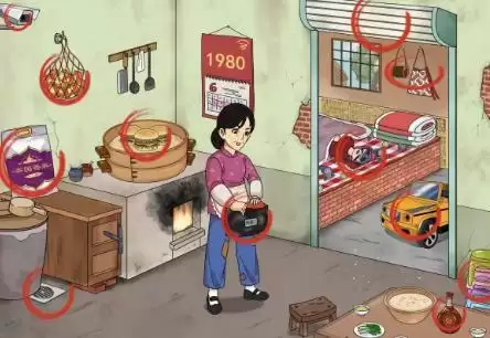 2、接着我们就可以在画面上找到拆快递、下水口、进口大米、火腿肠、摄像头、大G玩具车、ox洋酒等不合理的答案。