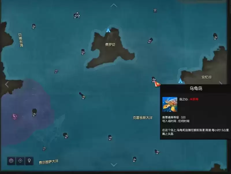 1、我们可以在游戏中的安忆谷左方找到乌龟岛。