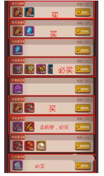 9、附送一张黑市购买优先级,大家依照下图选择购买即可