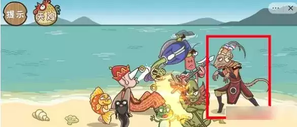 2.进入游戏之后,点击唐僧就会钓出动物,正确的方法是当唐僧头上出现感叹号“!”的时候点击唐僧,然后会不同的水系动物会进行合成。