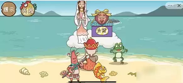 4.召唤神龙成功后,在三张牌中任意点击一张开始许愿“收服沙僧”,然后观音菩萨就会从水底中将沙僧送出来,然后就通关了。