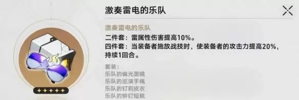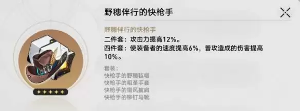 增伤和加攻击都是非常有用的属性,而没有雷四件套时,我们可以选择信使/雷套/快枪手二件套组成2+2过渡,也可以直接选快枪手四件套。