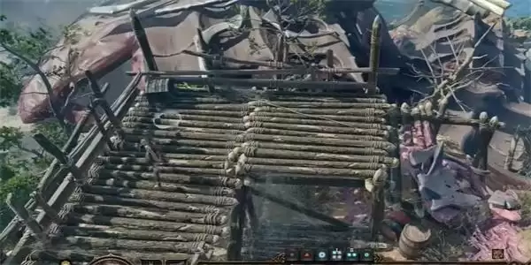 2、接着我们从这个岩石上去之后,就可以进入到一个院子,需要在院子的二楼才可以找到该装备。