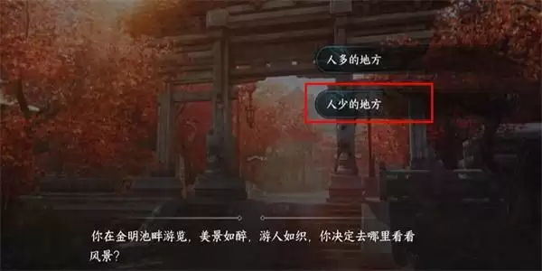 2、接着我们就来到了金明池当中,就会出现对话选择,按照小编标记好的对话进行选择即可。