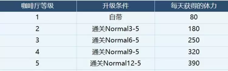 注:从主线任务的第三章就可以不断的通过关卡来升级咖啡厅获得体力;