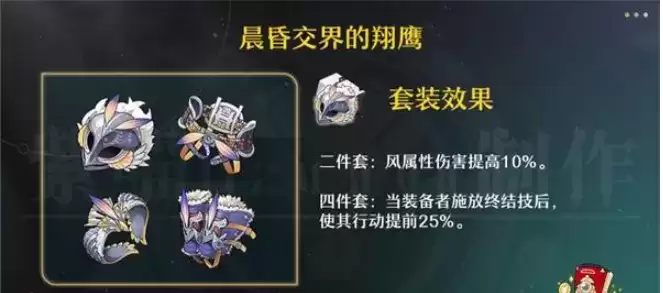 这个套装二件套提高风伤,四件套给了一个拉条效果,可以让我们更快行动,四魂的桑博多次行动可以多次触发4魂的结算,可以考虑使用这个套装。