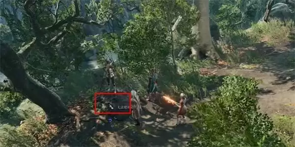 2、接着我们就前往到这片树林当中,在一个大树的根下,就可以发现到这个位置有点奇怪。
