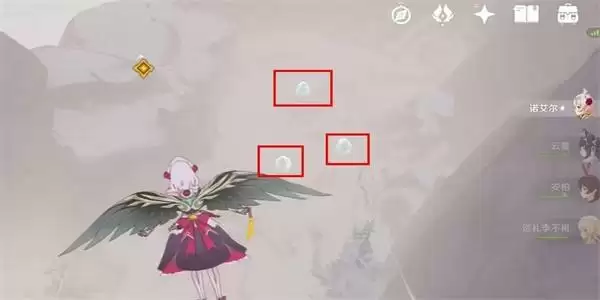 2、接着我们就根据指引一直向前方飞过去,直到我们可以看到下方的白色冰块。