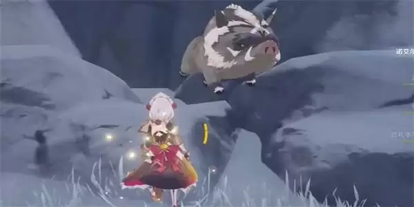 3、我们落地之后,就可以看到被冰冻的野猪,我们需要把野猪击杀之后,才可以获得到。