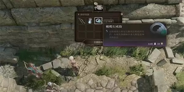 4、我们到达桥下之后,就可以看到白骨,我们在白骨的身上就可以获得到橄榄石戒指了。