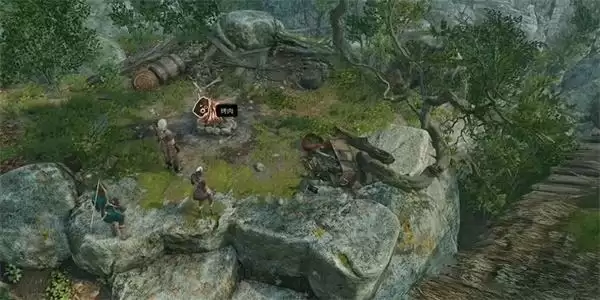 2、接着我们就需要上到这个岩石上面,就可以看到烤肉的位置了。