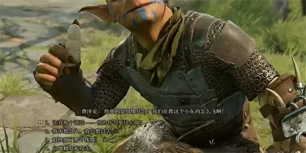 2、接着我们与NPC继续对话,在对话中,让他放开侏儒,他要求我们与他掷色子。