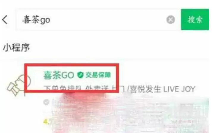 1、首先进入到微信app中,搜索【喜茶go】就可以进入大搜点单小程序中;