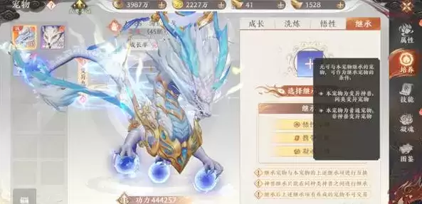 比如少侠想要将自己的7变蛟龙的继承给别的宠物,接受继承的宠物必须也是神兽蛟龙。