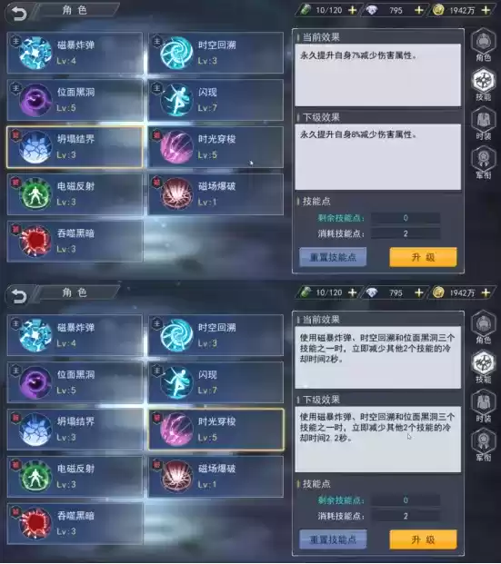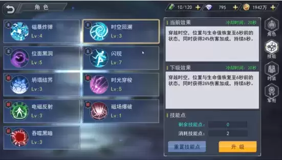 最后是坍塌结界以及时光穿梭!坍塌结界可以为克劳德提供永久减少!而时空穿梭在释放主动技能是会减少另外两个主动技能的冷却时间!因此克劳德的技能千万必要吝啬!用的多技能冷却越快!