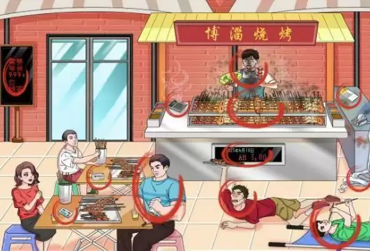 1、首先我们需要进入到此关卡,就可以看到画面上有很多的烧烤串,点击之后就可以获得到【倍速烤串】的答案。