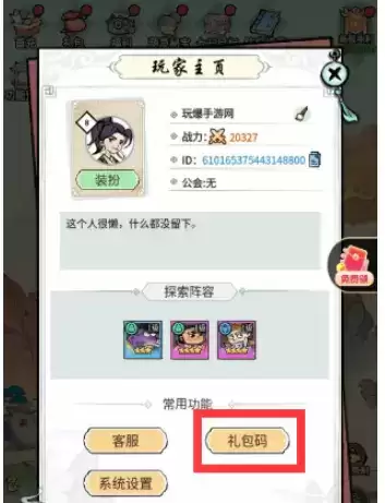 3、在玩家页面的底部,找到【礼包码】按钮,点击进入。