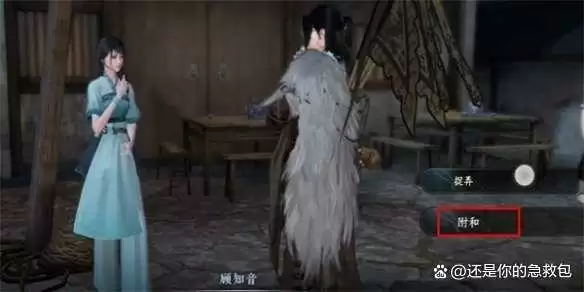 2、从弹出的两个选项中选择附和,从对话中知道顾知音十分仰慕神捕无情,想要面见他。
