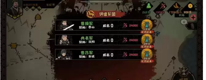 注:创建军团至少需要一位武将,同时要地只能驻扎一队军团,而治所数量没有限制。