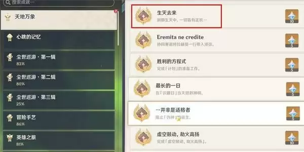 原神隐藏成就生灭去来解锁方法: