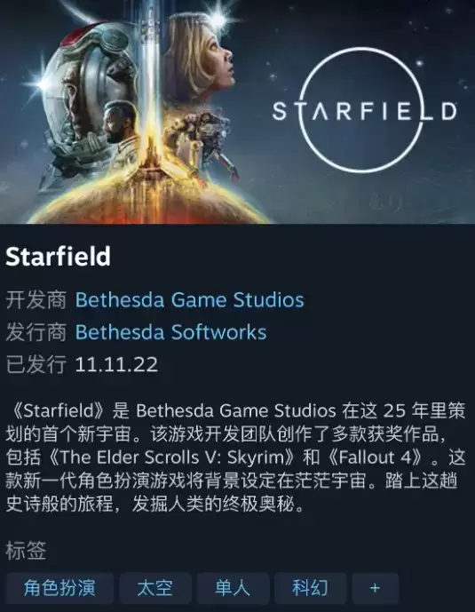 1、我们进入steam,搜索STARFIELD,可以看到星空游戏,进入会看到这款游戏是单人游玩的,无法联机。