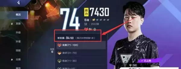 选手状态可以通过两个方式来提升,一是自动恢复,每20分钟可以恢复一点角色的状态值,同时挑战pvp模式获胜也可以提升。二是峡谷之巅对战。