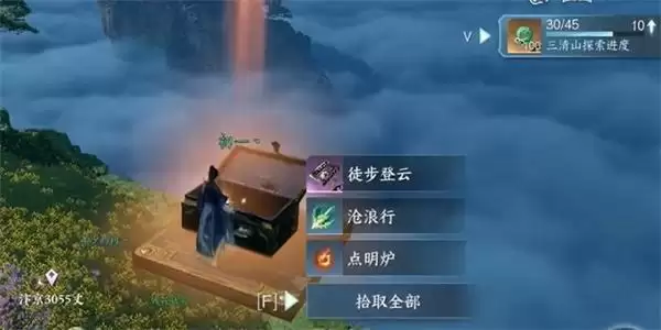 3、最后我们跳跃到宝箱的面前,把宝箱打开之后就可以获取到里面的奖励和徒步登云的技能。