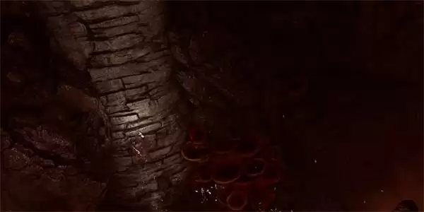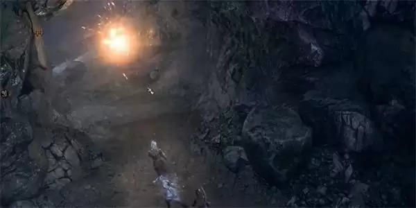 2、接着我们就进入到幽暗地域海滩下方之后,爬上这个岩石之后,前行即可。