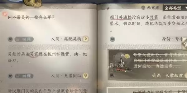 1、玩家需要前往雁门关,找到章同进行对话即可解锁传闻任务。