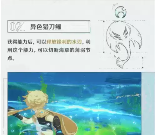 可以使用该能力切断水中海草的薄弱点,从而完成解谜打开宝箱!