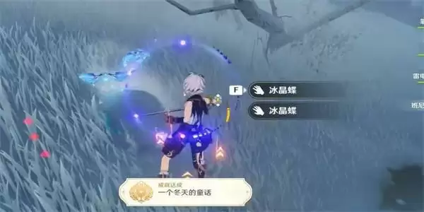 3、最后我们多寻找到几个土堆之后,就可以看到冰晶蝶,同时还解锁该隐藏成就一个冬天的童话。