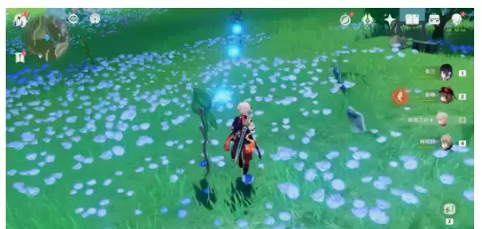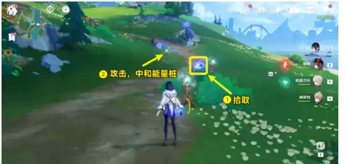 (1)用风元素攻击让风车转动,风车转动后拾取出现的水微粒。