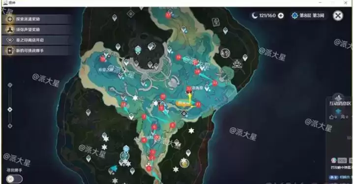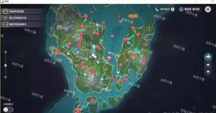 2.枫丹延区地上水神瞳共23个,部分有解密传送门可以直达。