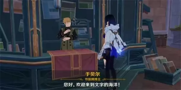 2、接着我们就开始在这个书店与NPC进行对话,在对话中,让他推荐我们一些书。