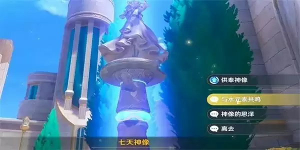 3、我们靠近七天神像之后,就会出现选项,需要选择第二个【与水元素共鸣】。