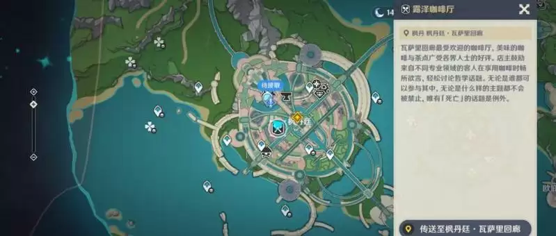 1、首先我们来到枫丹,传送到露泽咖啡厅位置。