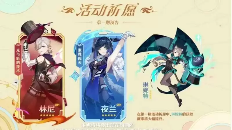 1、新角色:林尼+夜兰+琳妮特(四星)