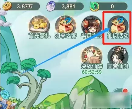 在游戏沫缝主窗口点击右上方的“仙门活动”图标。