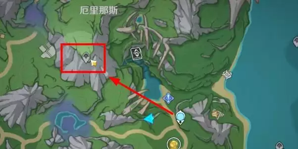 1、打开原神枫丹地图前往【厄里那斯】下图传送点,沿着下图箭头标记的位置移动。