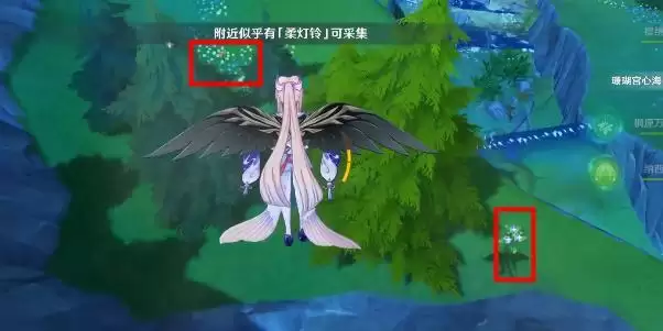 4、来到地面后会有提示附近有柔灯铃可采集,朝着下一层跳下去,在下图位置就能找到。