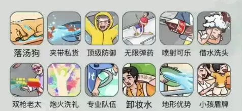 【地形优势、落汤狗、夹带私货、顶级防御、炮火洗礼、借水洗头、双枪老太、无限弹药、喷射可乐、卸妆水、专业队伍、小孩盾牌】