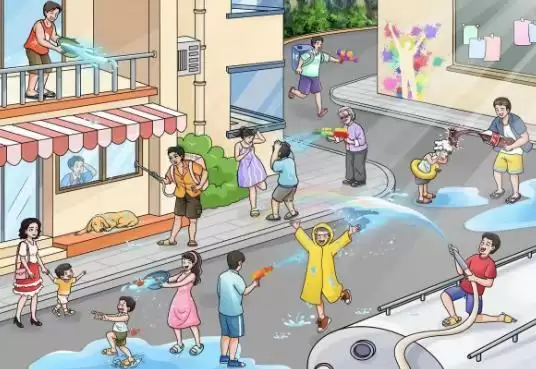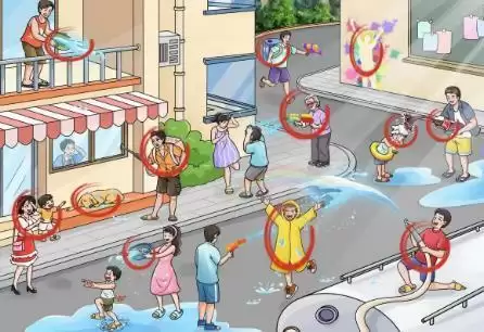 1、首先我们进入到此关卡的画面当中,就可以看到一个人朝下面泼水,点击之后就可以获得到【地形优势】的答案