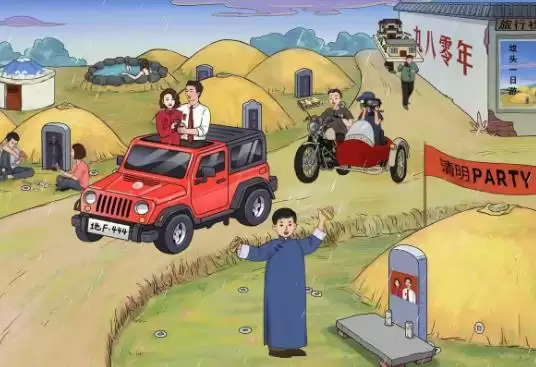 答案:【打牌、蒙古包、坟地旅游、清明派对、专业摄像、烧烤贡品、红色越野、单口相声、地府牌照、露天温泉、坟前打牌、墓碑婚照】