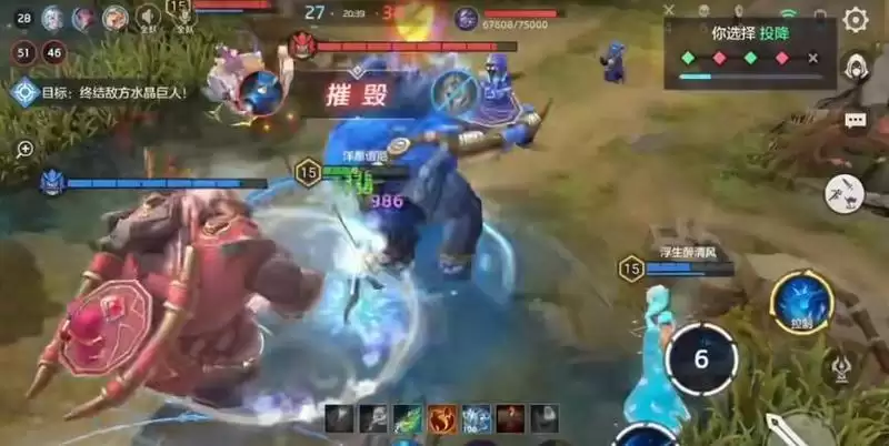 3、只要游戏到了20分钟,就无需在意基地了,我们只需要击败敌方的水晶巨人即可获得游戏胜利了。