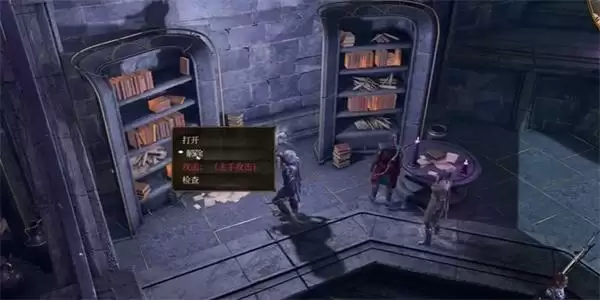 2、接着我们进入到房间当中,走向第二排的书柜,在此书柜面前进行解锁即可。
