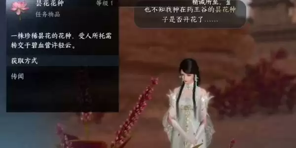 2、接着我们就与NPC完成对话,就可以获得到昙花种子,我们需要把这个昙花种子送给NPC的师姐。