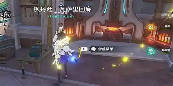 3、我们到达目的地之后,就与伊丝黛莱进行对话,在对话中购买到键帽即可。