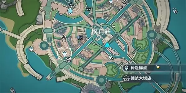 1、首先我们可以看到地图上所在的位置,在此位置当中完成危机四伏的枫丹廷任务。